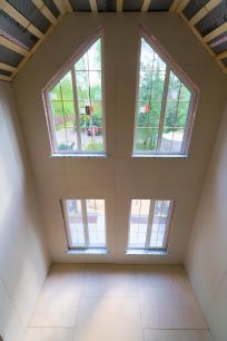 Особенность данного проекта - это второй свет, высота потолков в кухне-гостиной превышают 6 метров. В зонах спален, с/у и остальных помещений - 2, 8 м2. Жилая площадь дома-179 м2 +терраса и патио 71 м2. Общая площадь объекта составляет-250 м2.