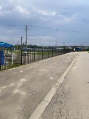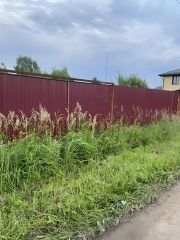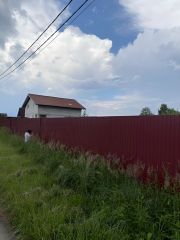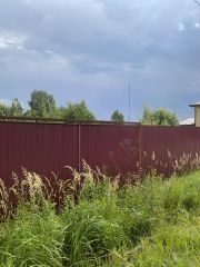Участок правильной формы, огорожен забором из профнастила, бордово-коричневого цвета.