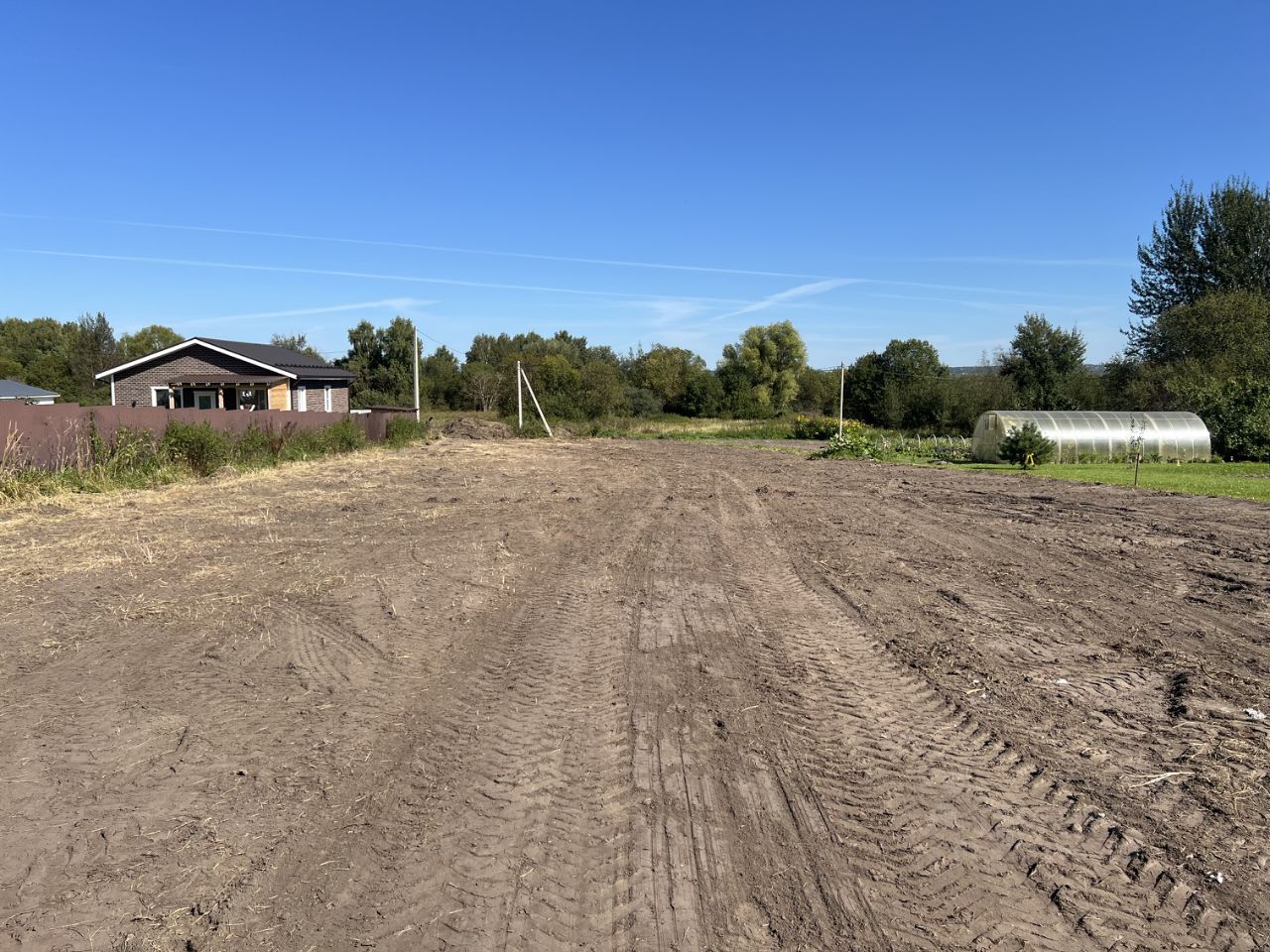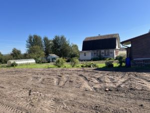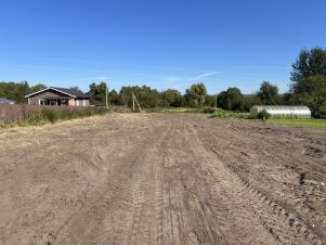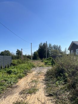 Деревня жилая, соседи живут круглый год, улица тихая спокойная, тупиковая, крайний участок на улице, рядом новые дома соседей, мимо участка нет проезда. Сам участок выровнен осенью 2024 года, тогда и были сделаны фото, готов для строительства, есть место для всех необходимых построек, частично огорожен. Рядом остановка общественного транспорта, детская площадка, небольшие озера и пруды, тихое и спокойное место для жизни.