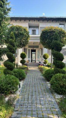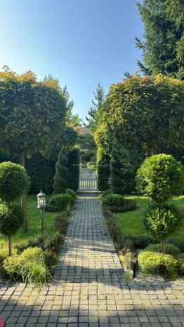На ухоженном участке с ландшафтным дизайном вы найдете пруд, водопад и зону для барбекю. Для гостей предусмотрен уютный домик с сауной и хамамом, а также квартиры для обслуживающего персонала.