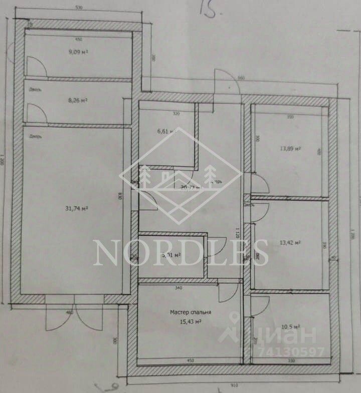 мастер- спальня (гардероб и личный С/У) 31 метр (либо две проходные спальни 15.5+10.5 метров),