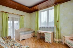 Высокие потолки. Материал стен -красный кирпич, перекрытия - ж/б плиты, все центральные коммуникации, большая застекленная веранда, лестница, двери из массива дуба, дубовый паркет, система фильтрации воды. Колодец, система дренажа, автом. полив (накопительный бак, автоматика). Гидророзетка для подключения шланга мойки, полива и очистки брусчатки. Автоматические ворота, двигатель Kame. Калитка с системой доступа, видемонитор. Гараж, навес.