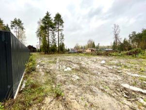 Идеальная подготовка: Территория полностью очищена от деревьев и кустарника, тщательно выровнена. Можно сразу приступать к планировке и закладке фундамента.