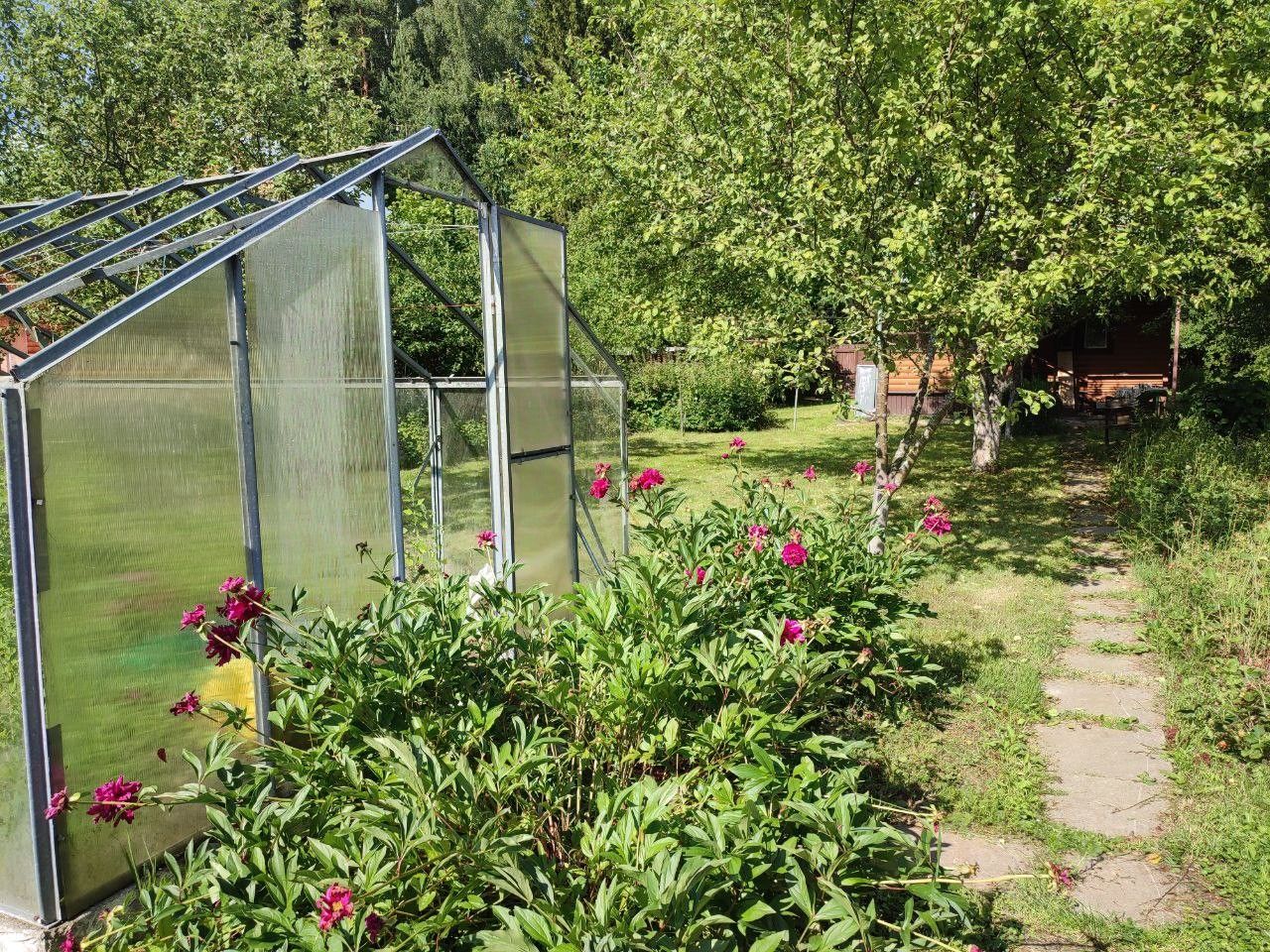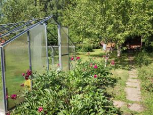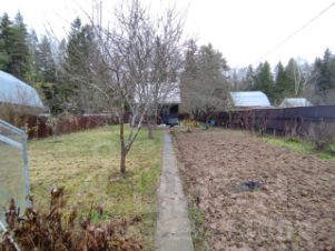 Участок 7,2 сотки, ровный, правильной формы, сухой, рядом с лесом, по внешнему периметру - деревянный забор, по границе с соседним участком - сетка-рабица. Граничит только с двумя участками. Участок обработан, имеется газон, растут плодовые деревья, кустарники, многолетники. Электричество 15 кВт, антенна Триколор, водяная скважина, по границе -газ. Баня (сруб 5,5х3,5), сарай с летним душем, туалет, теплица на ленточном фундаменте.