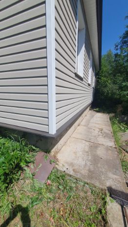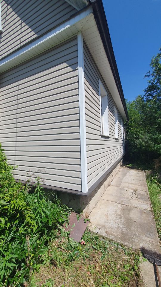 Дом из бруса 150х150 утеплён и обшит канадским сайдингом.Крыша ондулин, под крышей утеплитель 150мм.Фундамент под домом бетонный