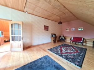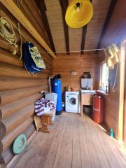 2-х этажный бревенчатый, теплый, комфортный. Общая площадь дома 145 кв. м + 2 веранды 30 кв. м и 10 кв. м (веранда внутри отделана лиственницей и вагонкой).