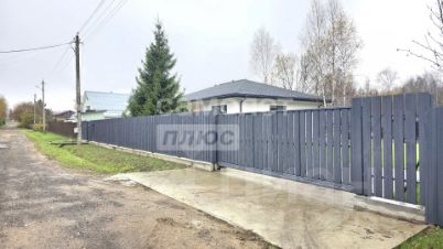 Участок в 11,66 соток сухой и ровный, огорожен забором с откатными воротами (предусмотрен электропривод). У калитки сделаны выводы под домофон, выведена видеокамера. От парковочного места (предусмотрена кладка плитки) к дому ведёт аккуратная деревянная дорожка.