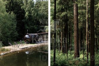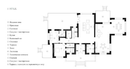 Малоэтажность и грамотное функциональное зонирование пространства первый этаж для приема гостей, второй этаж для приватного проживания членов семьи. Естественный ландшафтный дизайн без строгой симметрии, с акцентом на вековой хвойный лес и реку, создает ощущение простора.