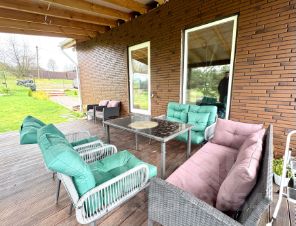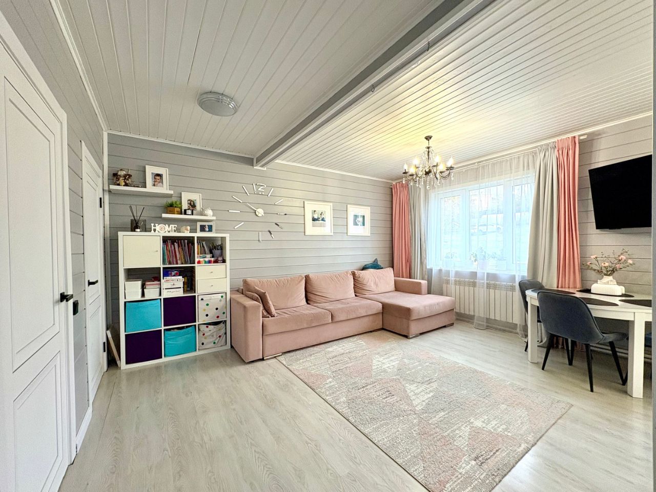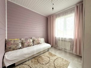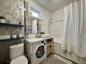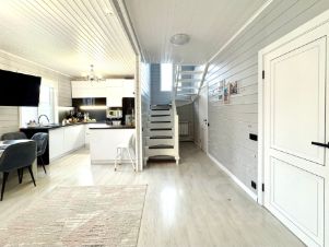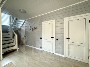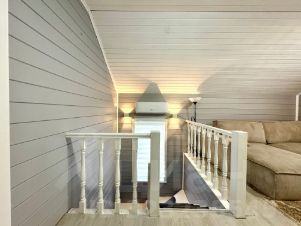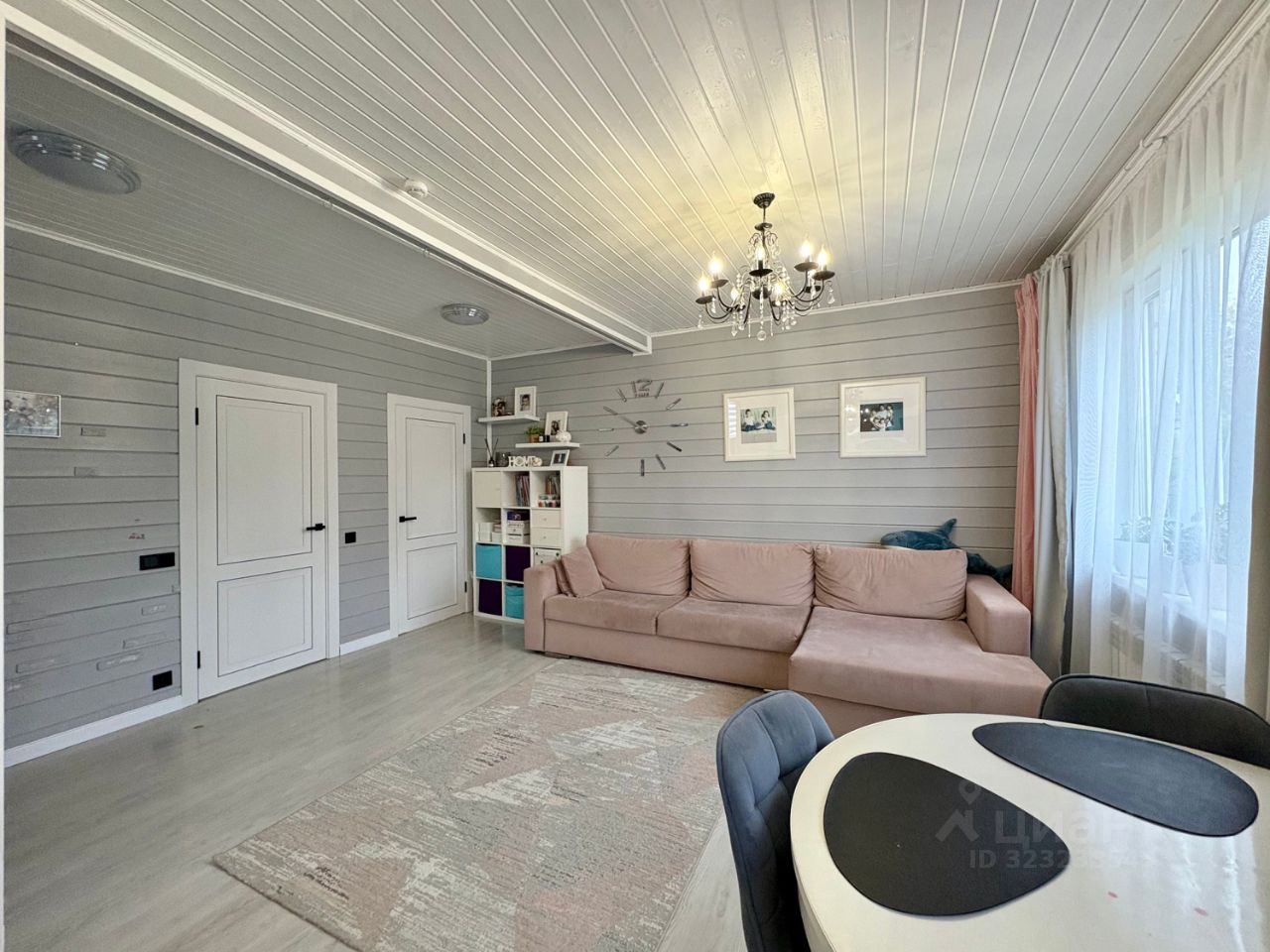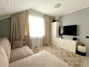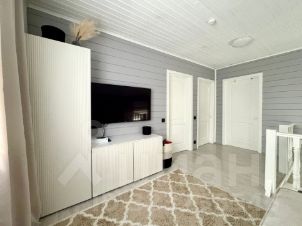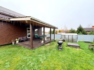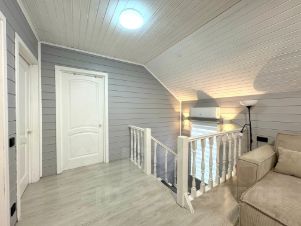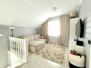 Дом расположен на земельном участке 6 соток., территория облагорожена, засеяна газонной травой, есть место для отдыха и барбекю.Внутренняя отделка имитация бруса, стены и потолки покрашены краской, поэтому их легко перекрасить в нужный цвет. Перед входом в дом имеется просторная веранда с уличной мебелью — отличное место для отдыха на природе.Далее в доме есть терраса, в которой можно установить системы хранения. На первом этаже в доме большая кухня-гостиная 27 м2. Гарнитур со встроенной техникой — индукционная варочная панель, духовой шкаф, посудомоечная машина. Также имеется двухстворчатый холодильник —морозильник. Техника и мебель остаются новому владельцу.На первом этаже есть гостевая комната 8,3 м2, а также совмещенный санузел 5,5 м2, установлены ванна, унитаз, гарнитур с раковиной, на стене полотенцесушитель.На второй этаж ведет деревянная лестница, не скрипит. На втором этаже — фойе с зоной для отдыха, где установлены диван и телевизор.