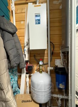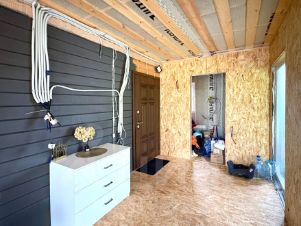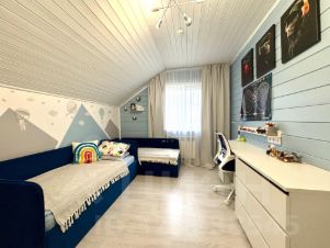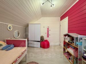 здесь же расположены 3комнаты — 2 детские (10,5 м2 и 12,5 м2) и спальня (10,5 м2).Дом каркасный, на свайном фундаменте, фасад дома обшит пластиковыми панелями с имитацией кирпича.Крыша металлочерепица.В дом заведено электричество 15 кВт, отопление в доме электрическое, по всему дому установлены радиаторы, на первом этаже теплые полы.Для отопления установлен котел Savitr 12 кВт.Для подогрева воды имеется водонагреватель Ariston (с сухими тэнами) на 100 литров, достаточно для большой семьи.Перед водонагревателем установлена система очистки воды.Источник воды — колодец на 23 кольца.Канализация — септик с переливом — 2 по 6 колец.