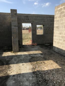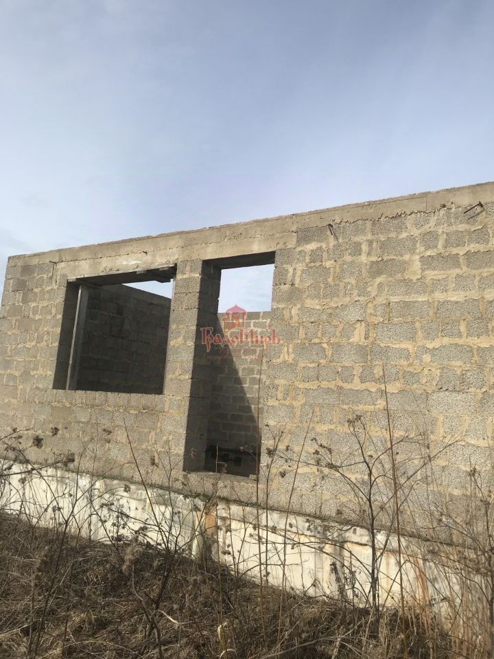 На участке недостроенный одноэтажный дом 12Х12. Фундамент дома свайно-ростверковый с монолитной плитой 20 см. Блоки керамзитобетонные 40Х20Х20. Закуплены пластиковые окна.
