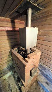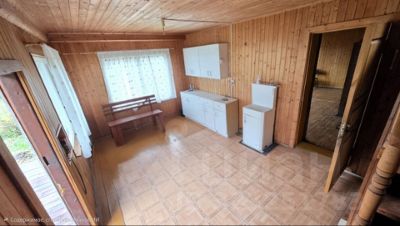Первый этаж кухня 15 кв.м и гостиная 25 кв.м. с печью (отопление печное). Второй этаж две раздельные комнаты по 15 кв.м. Есть подвал.