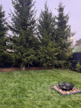 Парковка на 5 авто, красивые виды из окон, декоративная подсветка дома и участка, дорогие материалы в фасаде дома и в интерьере, высокие потолки, высокие межкомнатные двери, деревянный забор (шахматка), премиальный газон, туи и сосны, высокие ели; в шаговой доступности - лес и река.