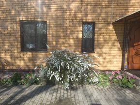 К дому пристроен гараж 30 кв.м. На участке баня, хозблок, парковка на 6 автомобилей, дровяник, беседка, теплица, парники, детский домик с горкой, два искусственных прудика, плодовые деревья и кустарники.