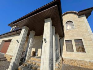 В доме 5 спальных комнат (21кв.м, 20кв.м, 15кв.м, 13кв.м,13 кв.м), две со своим санузлом, кухня-столовая со всей необходимой бытовой техникой с выходом на веранду (23кв.м), гостиная с камином и домашним кинотеатром (25кв.м), 3 гардеробные комнаты, просторный мансардный этаж с кабинетом, гараж, на цокольном этаже расположена сауна, постирочная, предусмотрена чаша для бассейна. На территории участка оборудована комфортная зона для барбекю.