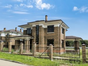 Коттедж подключен к центральным коммуникациям (центральный газопровод, электроснабжение 15 кВт, водоснабжение, водоотведение, высокоскоростной интернет). Построен забор в едином стиле с калиткой и откатными воротами.