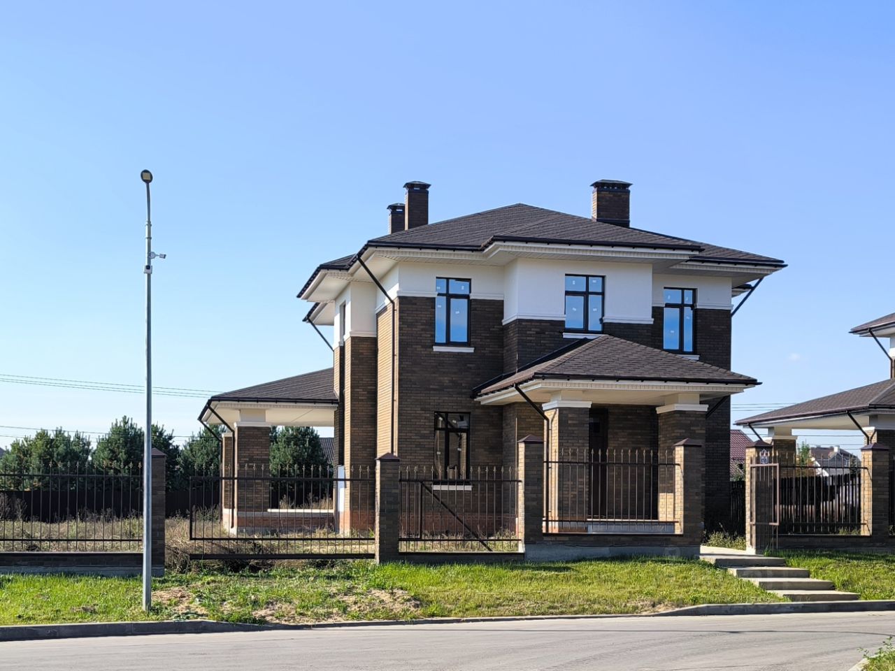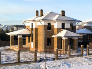 Готовый коттедж под отделку 260 кв.м. на участке 18 сот в жилом поселке бизнес-класса "Монреаль". Крайний участок, граничит только с одним соседом. Построен из материалов высокого качества: монолитный фундамент; внешние стены - термоэффективный керамический блок, фасад выполнен из облицовочного кирпича Браер (Баварская кладка) с элементами штукатурки и декора; перегородки кирпич, крыша мягкая кровля, ламинированные стеклопакеты Rehau; залита монолитная лестница; установлена входная дверь с терморазрывом; высота потолков 1-го и 2-го этажа 3.5 м.; залита монолитная дорожка к дому.