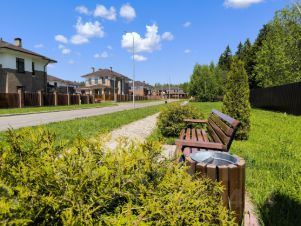 Коттедж подключен к центральным коммуникациям (магистральный газопровод, электроснабжение 15 кВт, водоснабжение, водоотведение, высокоскоростной интернет). Построен забор в едином стиле с калиткой и откатными воротами.