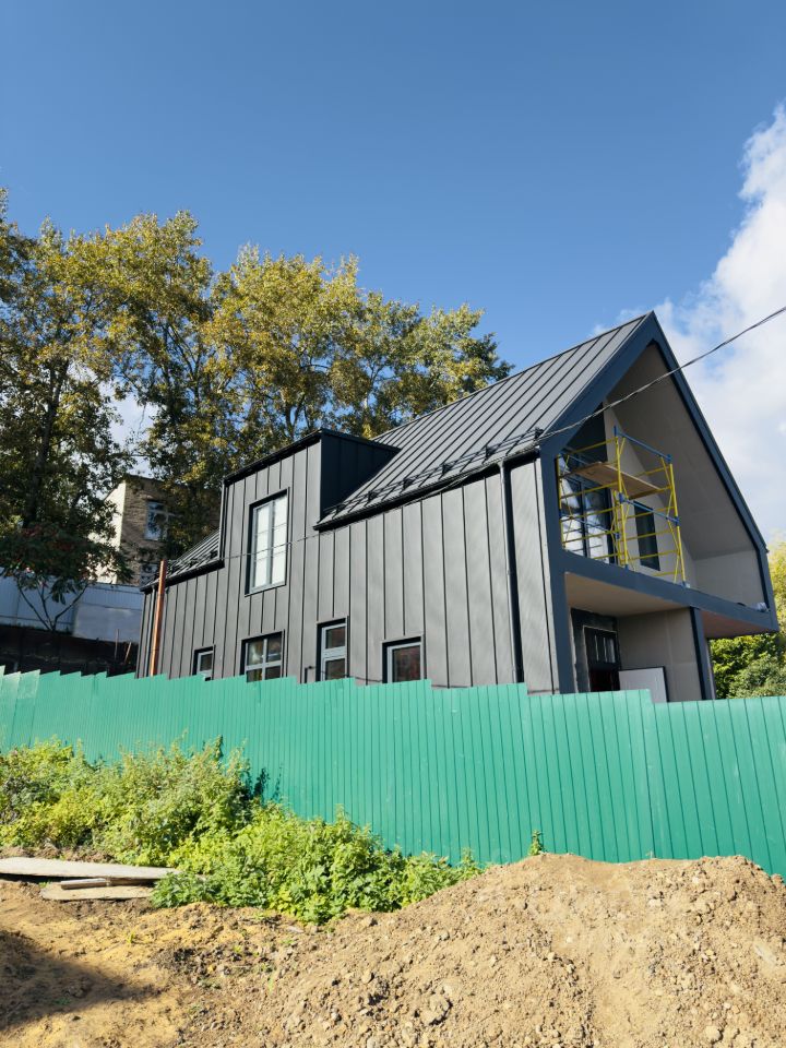 Первый венец лиственница импрегнированная. Утепление стен 250, фасад из кликфальц PRO GOFR.