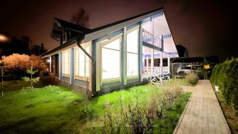 Дом из клееного бруса очень стильный и современный в стиле экологичного минимализма: