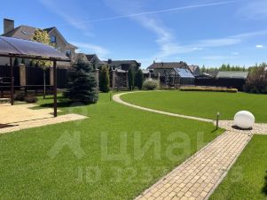 На земельном участке 24 сотки  произведены ландшафтные работы профессиональным дизайнером. Устроены газоны, разбиты клумбы, посажены экзотические деревья. Сделан дренаж (участок сухой после любого дождя), автоматический полив (управляется с телефона), система умного дома на уличное освещение и т.д).