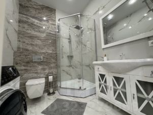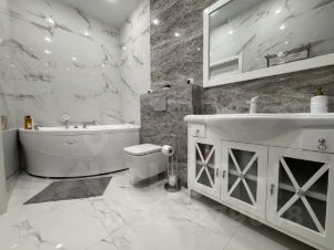 Внутри дома выполнен шикарный ремонт, дом обставлен мебелью и бытовой техникой ( на кухне - встроенный холодильник, посудомойка, плита, дух шкаф)