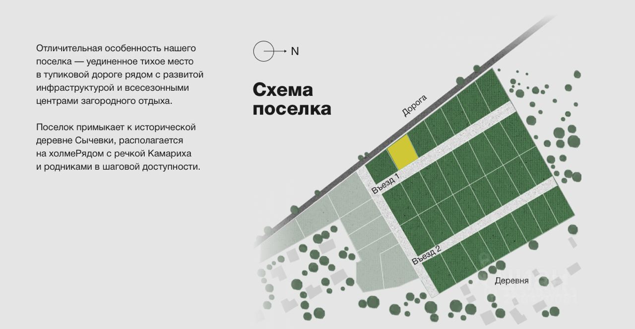 • Расположен на территории коттеджного посёлка Сычевки Лайф, всего ~47 км от МКАД по Дмитровскому шоссе.