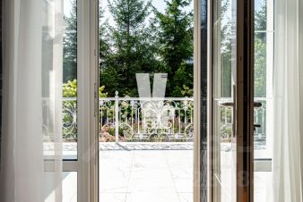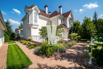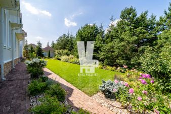 -с ландшафтным дизайном и автополивом (дорогие высокие деревья, цветы, Фруктовые деревья и ягодные кустарники), освещение по всему участку, полностью приватная территория (соседей не видно ).