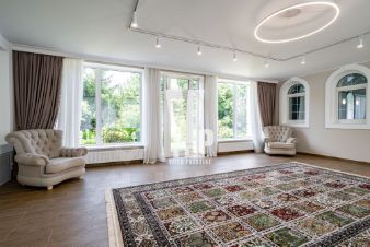 1-й этаж -прихожая, спальня с гардеробной комнатой, санузел гостевой с душем, гостиная с дровяным камином (отделка мрамор ), выходом на большую открытую веранду, кухня с отдельной комнатой для хранения.