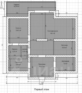 В доме 5 изолированных комнат (1 на первом этаже и 4 на втором), 5 санузла, большая кухня-гостиная, терраса. коммуникации заведены в дом.