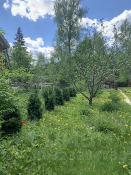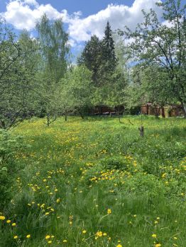 Участок прямоугольной формы использовался для посадок фруктовых деревьев, цветов и ягод.