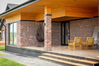Внешняя отделка- искусственный камень, окна с внешней ламинацией , компании Sсhtandart, кровля- гибкая черепица.