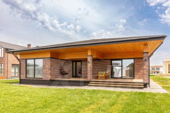 Дом площадью 208 м2, 1 этаж, установлен на ленточный фундамент.
