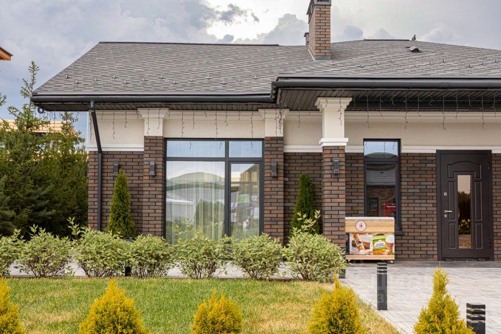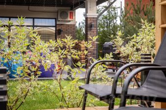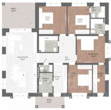 Одноэтажный дом на 166,55 м2. На этаже расположены: прихожая, холл, кухня-гостиная, два санузла, четыре спальных комнаты, гардероб, крыльцо, терраса, патио, джакузи, кладовая.