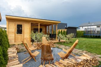 Кровля дома из металлочерепицы, цвет серый RAL 7024. Вся стропильная система обработана огне-биозащитным составом.