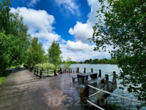Расположен в живописном месте на берегу прудов и окружен лесом. На территории поселка есть благоустроенная береговая линия, где организованы большая современная зона отдыха с беседками и лавочками, площадки для барбекю и собственный песчаный пляж с лежаками, на территории строится небольшой торговый центр 900 квадратов.