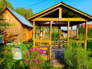 Инфраструктура на участке: Летний душ, туалет, хозблок с летней кухней, беседка.