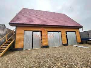Гараж из бруса лиственницы 200/200, первый этаж на три автомобиля с отдельными воротами под каждое авто, плюс второй этаж (полноценная комната).