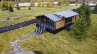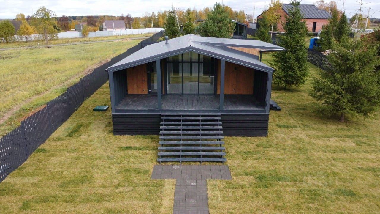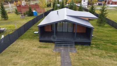 Новый современный дом построенный в стиле барнхаус по каркасной технологии общей площадью 92м2.
