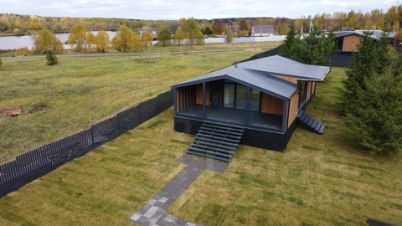 В доме большая летняя веранда- прихожая 24 м2, просторная гостиная с панорамным остеклением 30м2, две изолированные спальни по14м2 с возможностью выхода на улицу, санузел с ванной.
