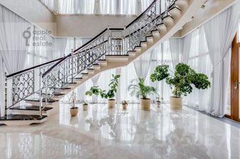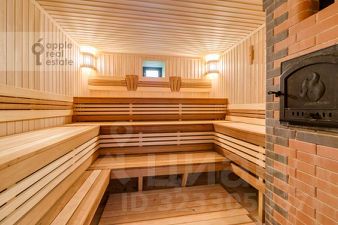 1 этаж: комната отдыха с мини-бассейном и панорамным остеклением, сауна, массажный кабинет, спортзал, терраса с барбекю, бильярдная с камином, гардеробная, кухня, с/у с душевой;