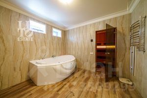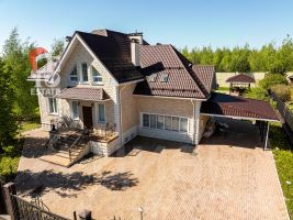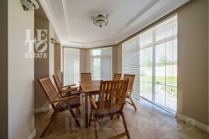 Внутренняя отделка выполнена с использованием только качественных и дорогостоящих материалов. Полы выложены декоративной плиткой и паркетной доской из массива дерева. Кухня выполнена на заказ и оснащена всей необходимой встроенной техникой ведущих мировых производителей (Zigmund & Shtain, NEFF, Liebherr). В дом заведены и разведены теплые полы от фирмы Rehau, оснащены системой "аквастоп". Сделаны выводы под систему кондиционирования. Под окнами установлены конвекторы. Лестница выполнена из натурального дерева (дуб).