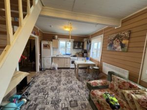Фундамент — сваи, материал дома — брус, вода — скважина, канализация — переливной колодец, электричкство 15 квт, газ по границе 200 метров.