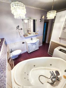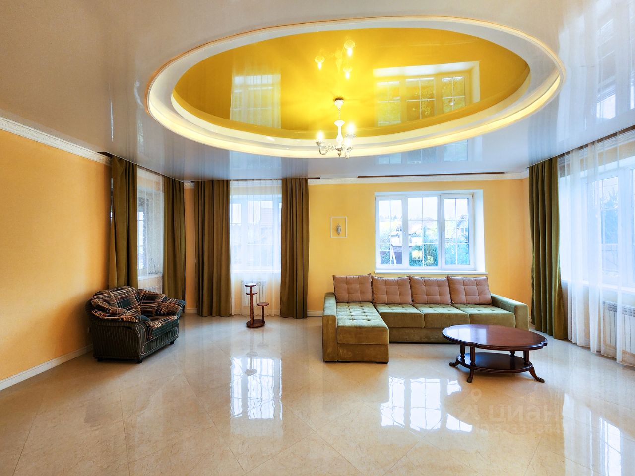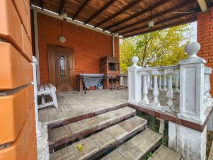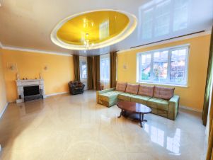 Два полноценных этажа, железобетонные перекрытия. На первом этаже гостиная с камином; кухня-столовая с печкой, на которой можно готовить и свой отдельный выход на открытую веранду с зоной для приготовления шашлыков и мойкой; гостевой санузел; гостевая комната/кабинет; бойлерная; отапливаемый гараж. На втором этаже три жилые комнаты, выход на просторную террасу; санузел с ванной и душевой; отдельная комната с высокими потолками со своей кухонной зоной и камином.