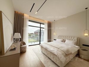 2 изолированные комнаты на первом этаже. На втором этаже 3 мастер комнаты (с ванными и гардеробными).