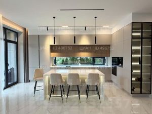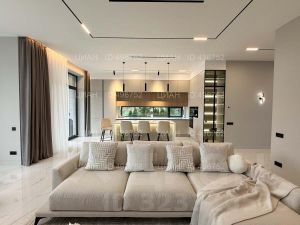 5 спален 4 санузла 4 гардеробные. Сауна, большая прачечная. Просторная гостиная-столовая-кухня.