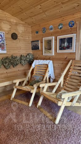 - Настоящая русская баня (парная с дровяной печью, комната отдыха с тремя креслами, душевая с бойлером, деревянная купель)