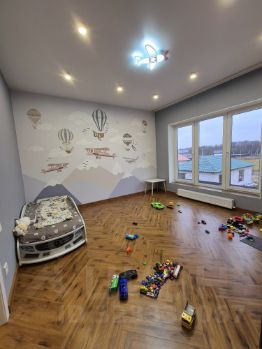 Высота потолков на 2-м этаже 3 метра. Всё окна панорамные "Rexau". Имеется чердак.