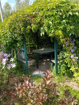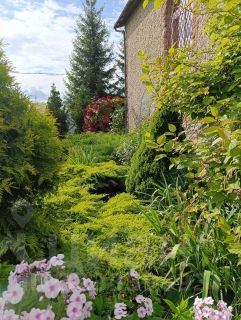 На участке 15 соток правильной формы имеется гараж, стационарный бассейн 9.5 на 4,5 м, беседка, ухоженный плодоносящий сад и огород, множество хвойных растений, цветов.