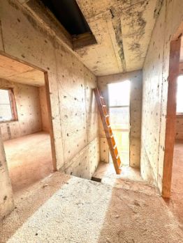 Планировка отличается практичностью: на первом этаже расположены прихожая, просторная кухня-гостиная прямоугольной формы с панорамным окном и выходом на веранду, гостевая комната или кабинет, санузел и хозяйственный блок. На втором этаже находятся четыре изолированные спальни правильной формы, удобные для расстановки мебели, а также вход на утепленный чердак, который можно адаптировать для увеличения полезной площади.